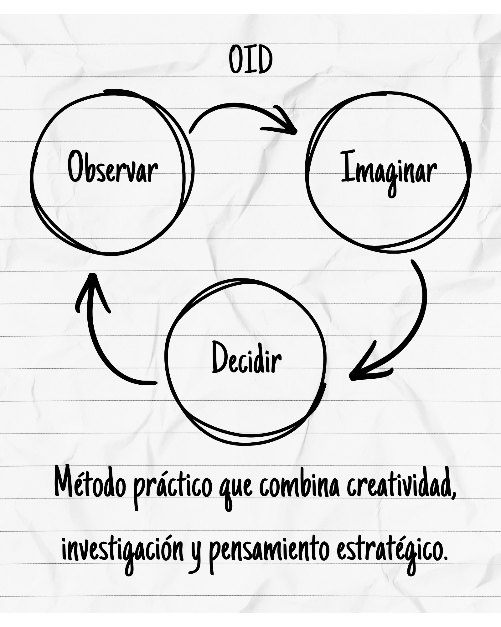 OID existe para resolver estos problemas a través de un método práctico que combina creatividad, investigación y pensamiento estratégico para ayudar a personas y equipos a entender el cambio y tomar decisiones con mayor claridad.